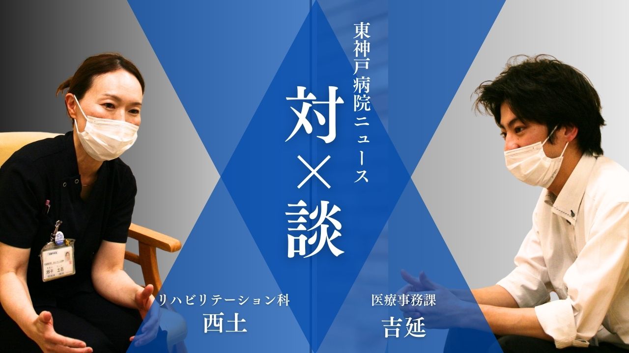 今回は、受付で患者さんを迎える医療事務課・吉延さんと、入院患者さんの回復を支えるリハビリテーション科・西土さんが、それぞれの現場で感じる“声かけ”や“寄り添い”について語り合いました。