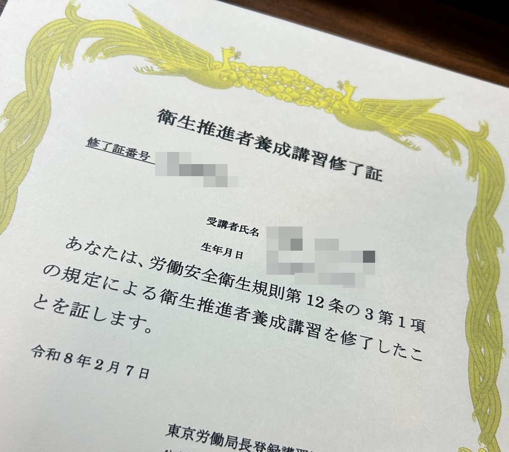 今回、当法人における衛生委員会活動の一環として、衛生推進者養成講習に参加し、その修了証を頂きました。当院では法人衛生委員会があり、リハ部からも衛生委員として、職員の衛生活動に参加させてもらっています。