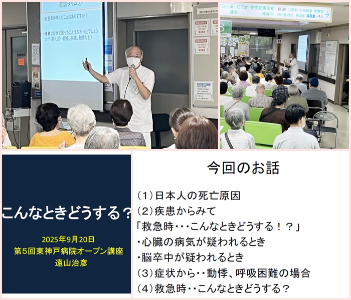 9/20(土)は、第5回東神戸病院オープン講座でした。今回のテーマは「こんな時どうする⁈~心臓や脳の病気の話~」でした。