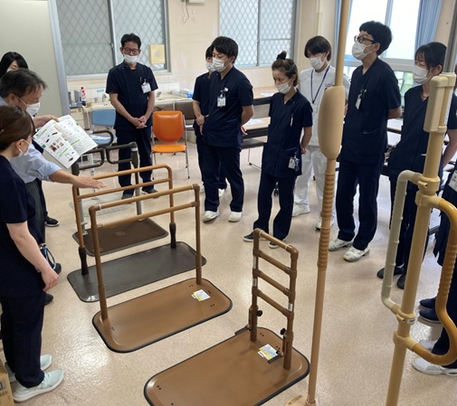手すりは病院でも自宅でも使用頻度のとても高い福祉用具で、商品ごとの特徴や使用場面の例などを知ることができました。