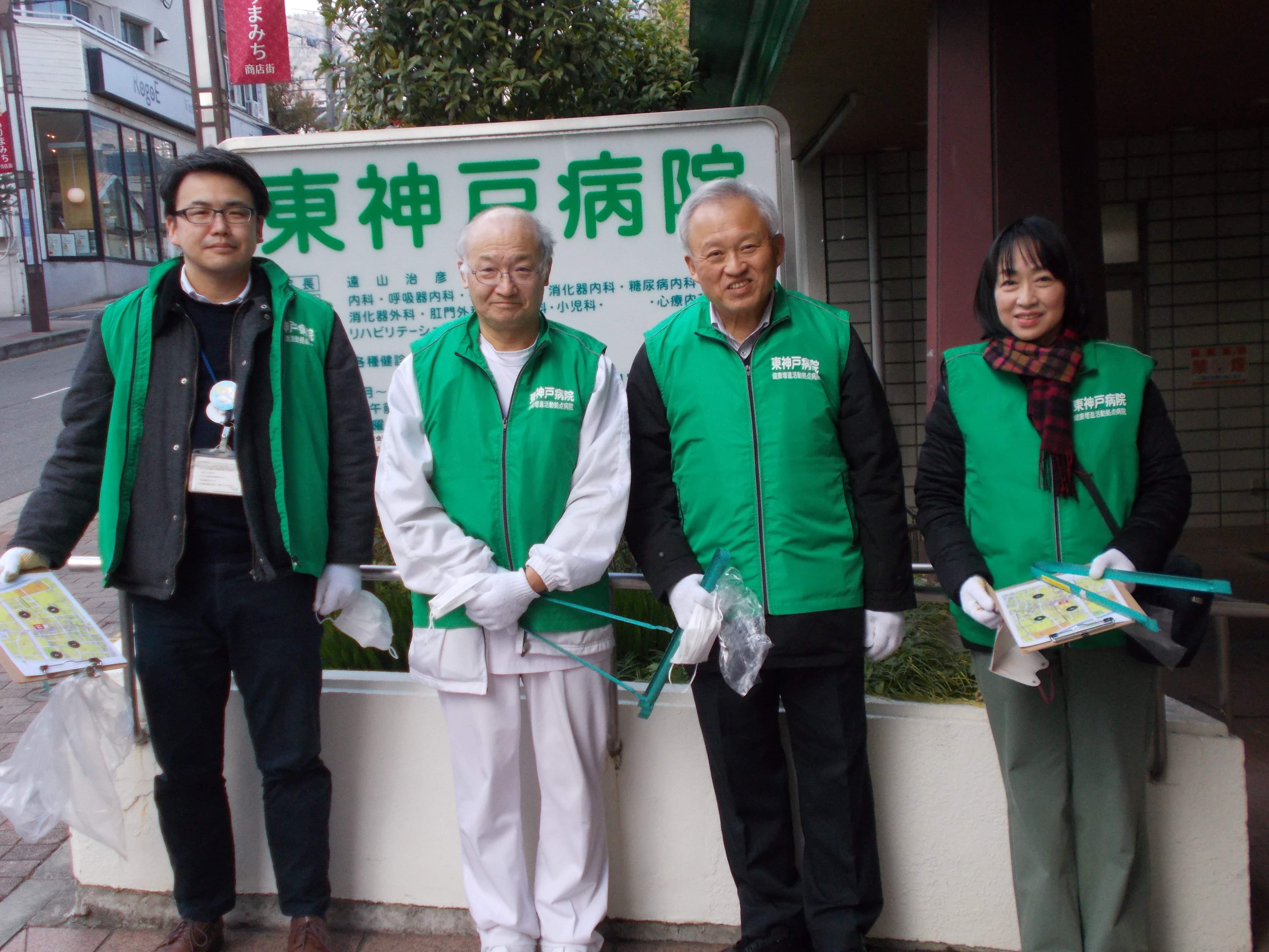 寒い中、参加人数は少なかったのですが、小一時間病院周辺の清掃活動を行いました。