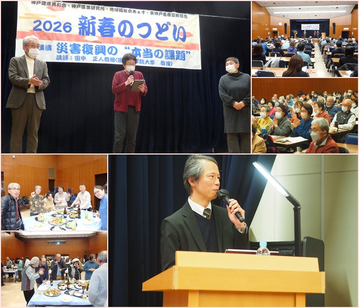 1/10は新春のつどいでした。追手門学院大学の田中正人教授による『~災害復興の本当の課題』と題した講演でした。