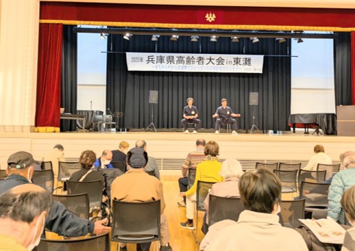 兵庫県高齢者大会IN東灘が御影公会堂で開催されました。その文化行事の一環として「フレイル予防体操」をリハ科が担当し、参加者の皆さんに座位での体操を指導させていただきました。