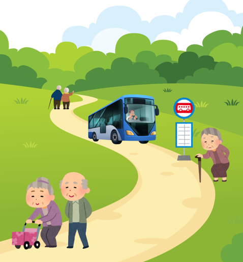 最近、外来の患者さんの予約をとるときに。「その時間には無理です。〇〇時くらいの予約をしてください。」と時間を指定される方が増えてきました。これは、日常利用されているバスの本数が減らされたため、いつもの時間には病院にたどり着けないことによるものです。さらには、路線が変更され、病院には通院がむつかしくなる方もいます。